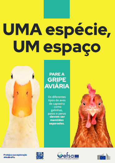 A Campanha #NoBirdFlu, promovida pela EFSA a nível da UE, tem fornecido informações essenciais sobre biossegurança nas explorações avícolas, dirigidas a quem trabalha numa exploração avícola, cuida de um bando de aves num quintal ou visita explorações avícolas no âmbito da sua atividade profissional.