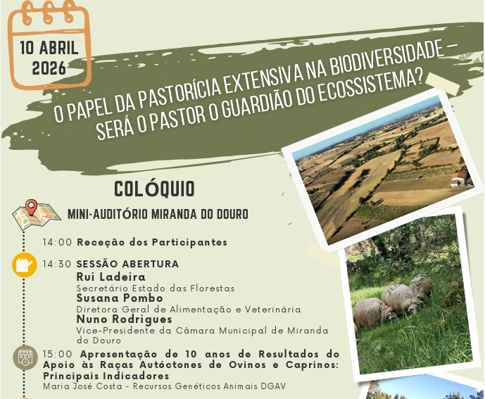A convite da ACOM – Associação Nacional de Criadores de Ovinos da Raça Churra Galega Mirandesa em colaboração com o Município de Miranda do Douro, a DGAV vai estar presente no colóquio intitulado «O papel da Pastorícia Extensiva na Biodiversidade – Será o Pastor o Guardião do Ecossistema?», que se realiza no dia 10 de abril, no mini auditório de Miranda do Douro.